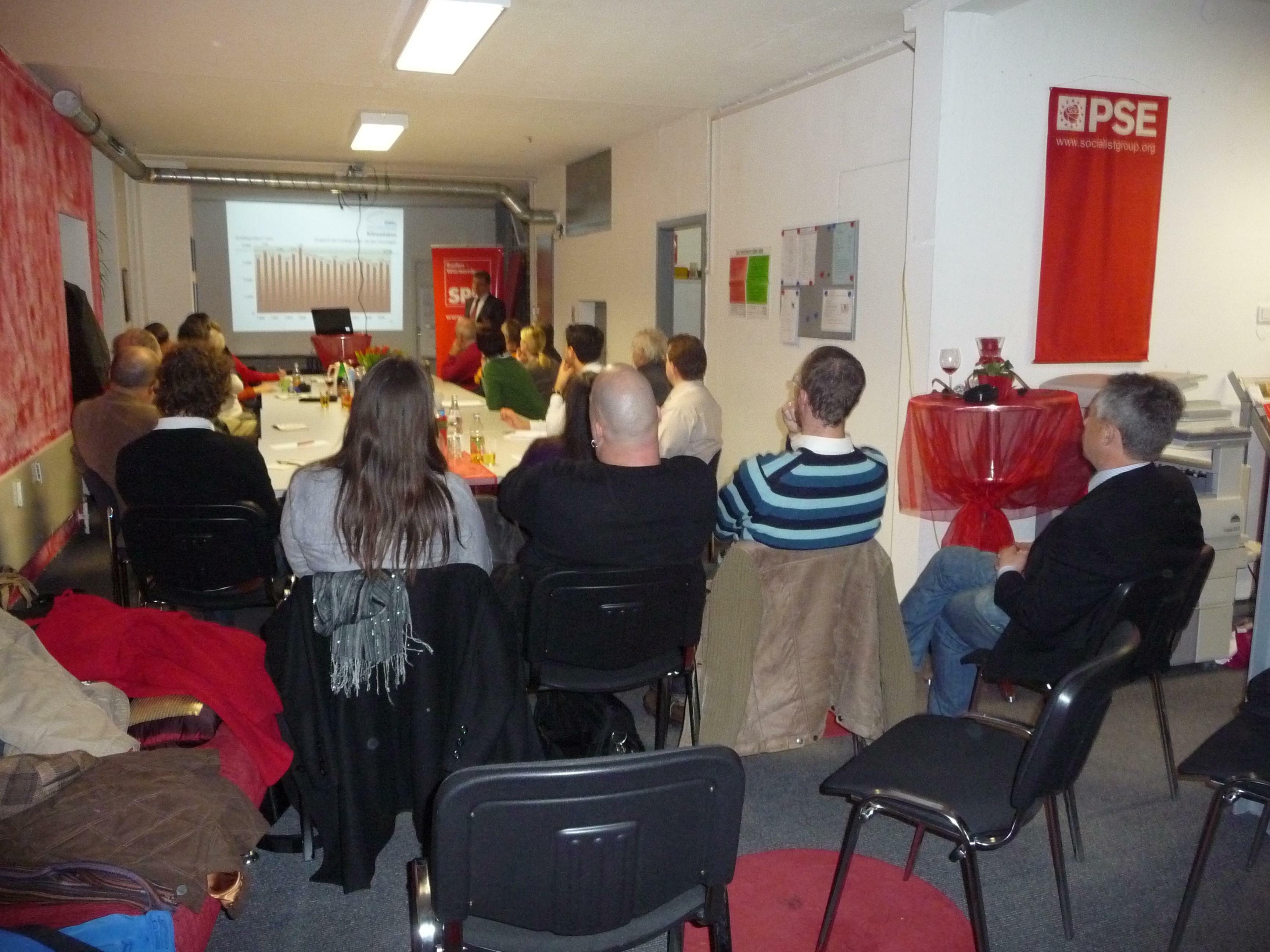 Etwa 30 interessierte Bürger und Genossen folgten den Ausführungen vom Leiter der Stadtwerke und hatten anschließend eine Stunde lang viele Fragen und Diskussionsbeiträge an ihn.